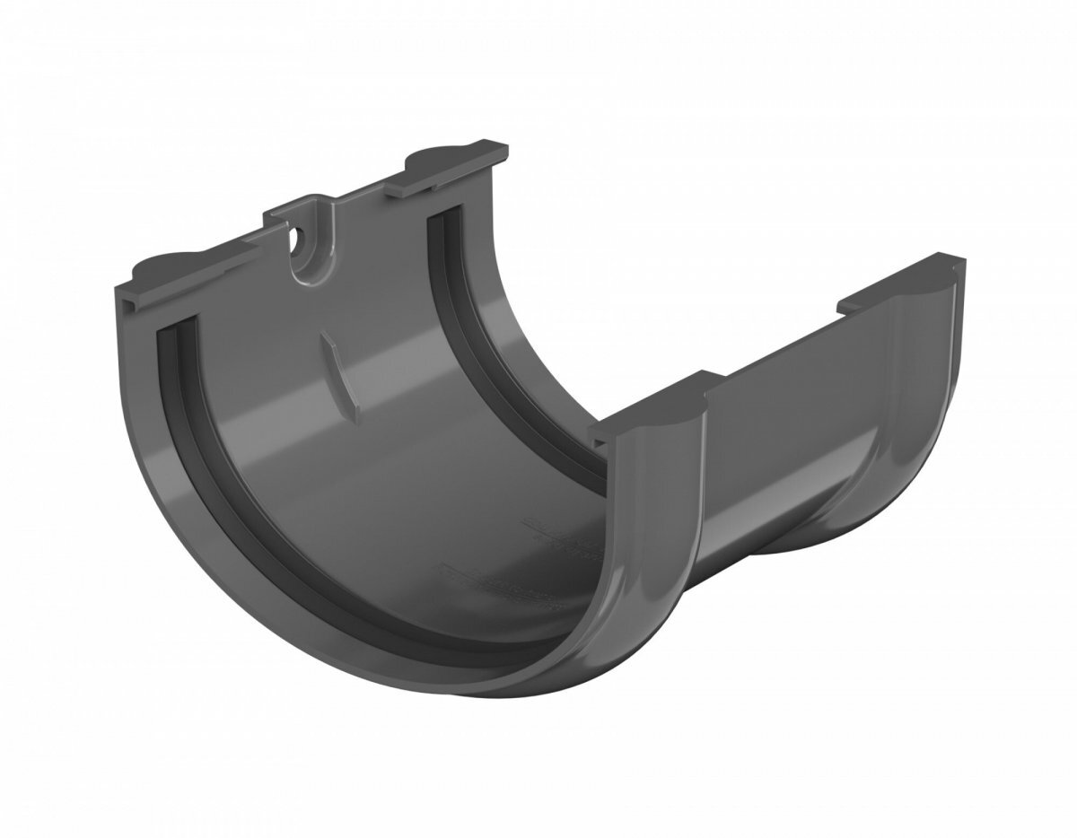 Соединитель предназначен для соединения между собой водосточных желобов. Герметичность стыка обеспечивает резиновый уплотнитель.